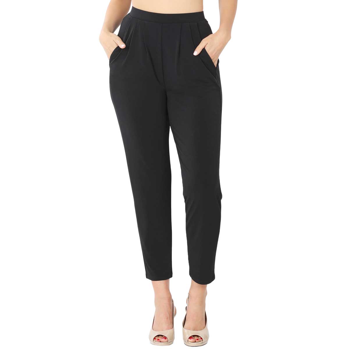 10019 Ity Pleated Waist Pants w/ Side Pockets BLACK Ity Pleated Waist Pants w/ Side Pockets 10019