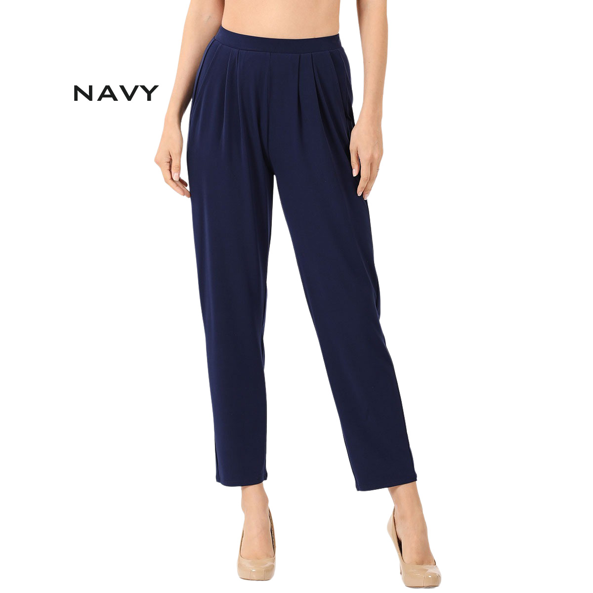 10019 Ity Pleated Waist Pants w/ Side Pockets NAVY Ity Pleated Waist Pants w/ Side Pockets 10019