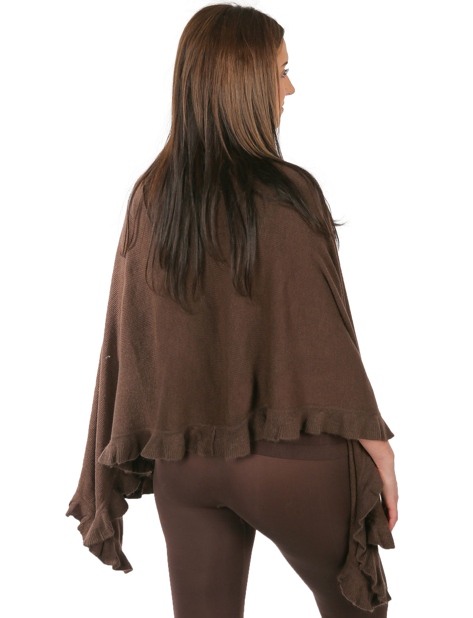 This medium weight Ruffle Knit Shawl is ideal for year round wear. The additional ruffle around the edge adds just a touch of interest and femininity.