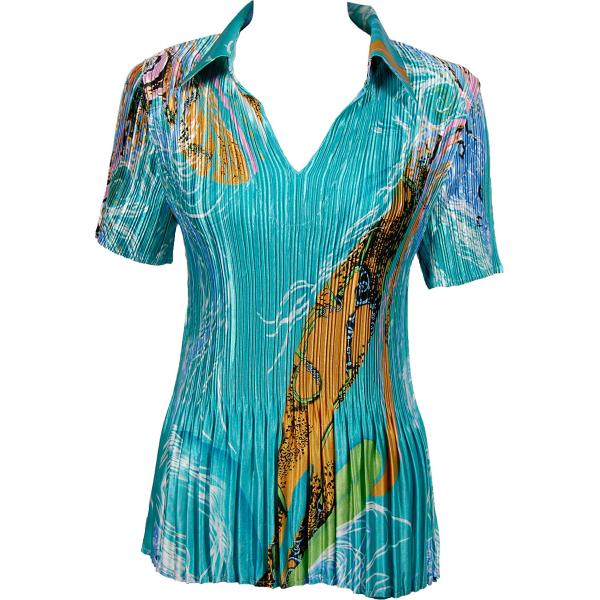 1149 - Satin Mini Pleats Half Sleeve with Collar