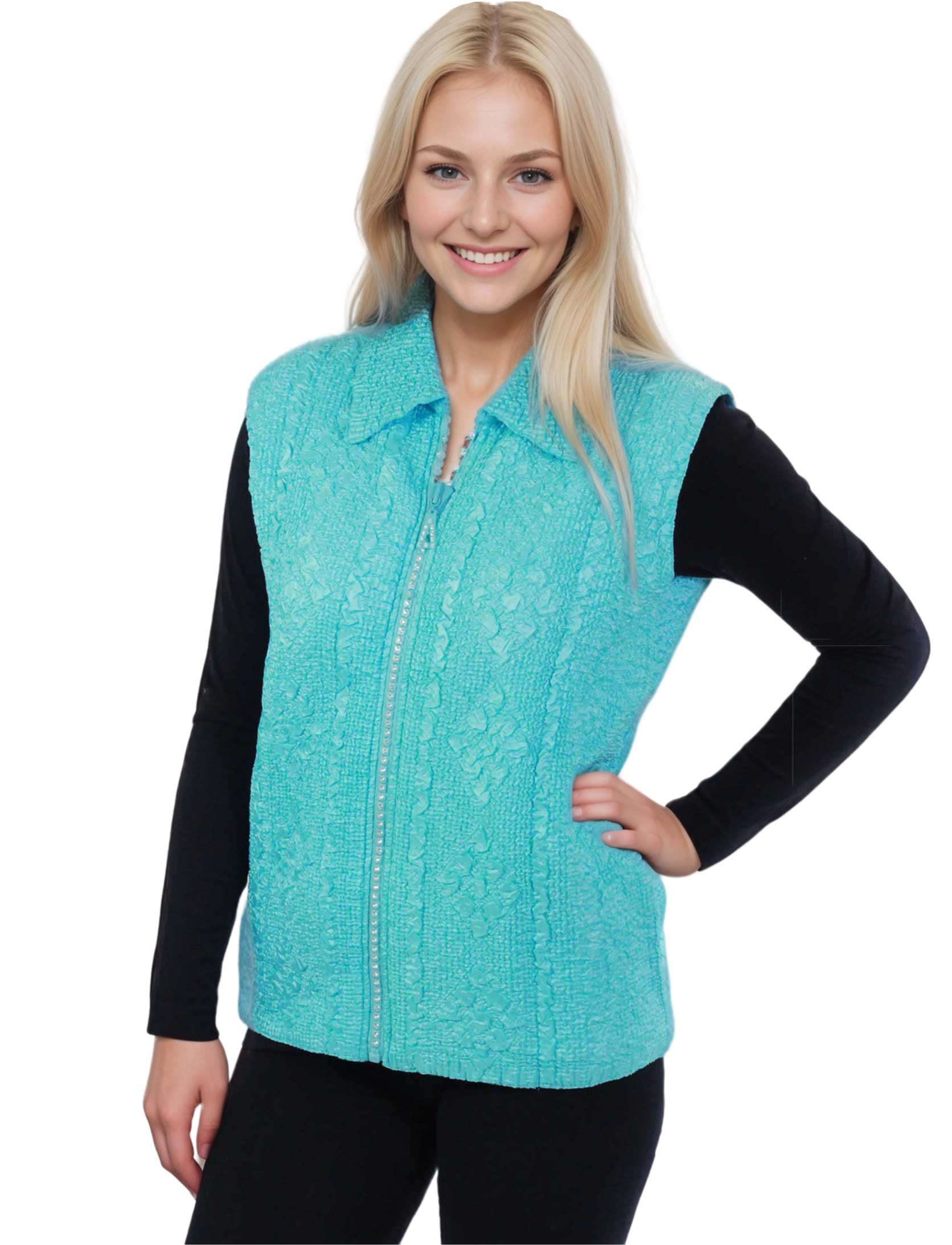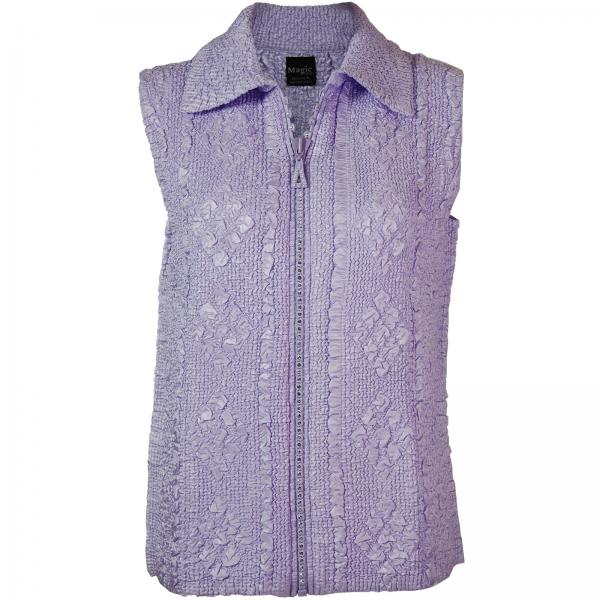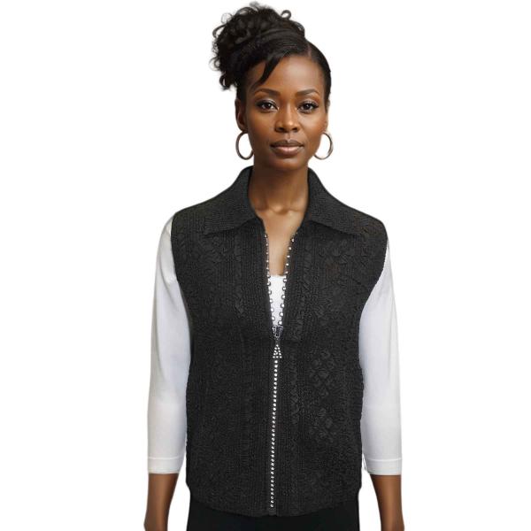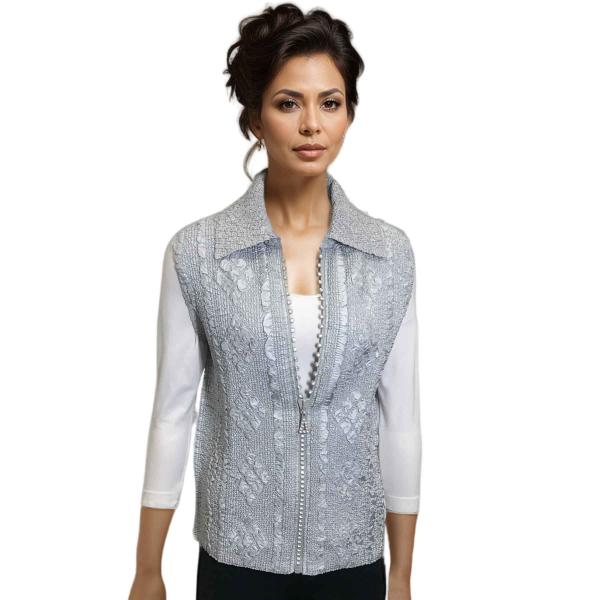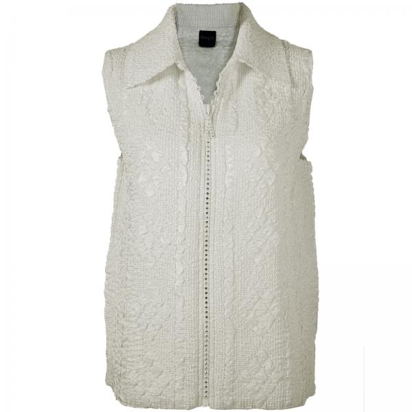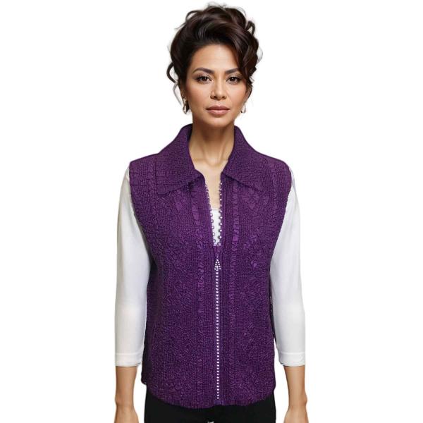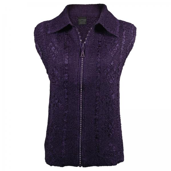 This quilted vest is designed in a crushed fabric that expands to fit and is finished with a decorative rhinestone zipper for a dash of modern style.