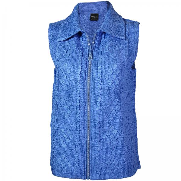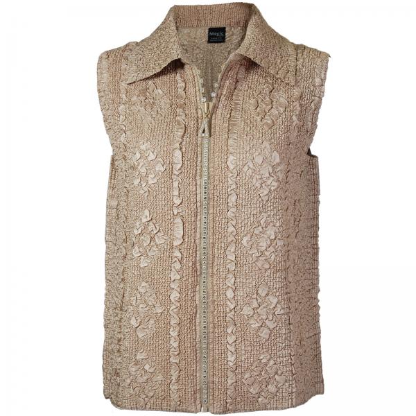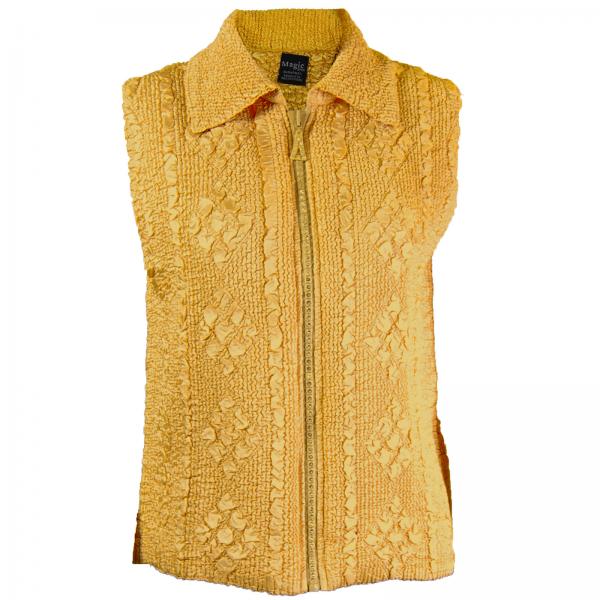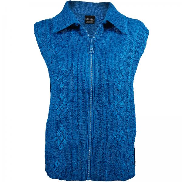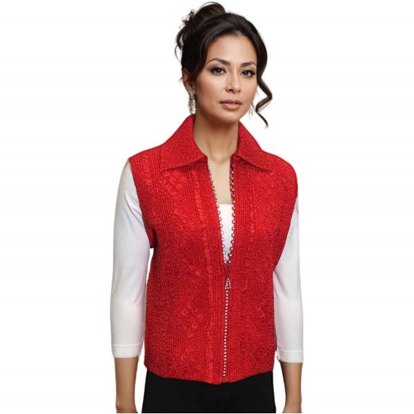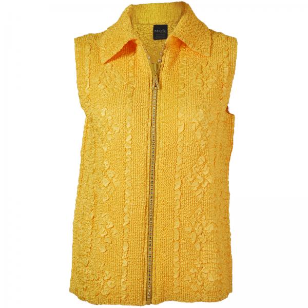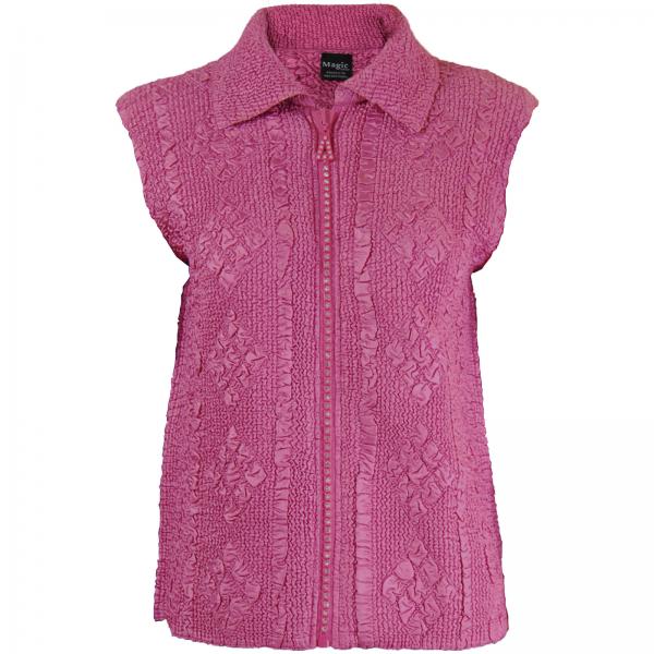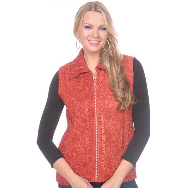 This quilted vest is designed in a crushed fabric that expands to fit and is finished with a decorative rhinestone zipper for a dash of modern style.