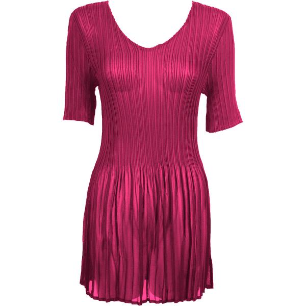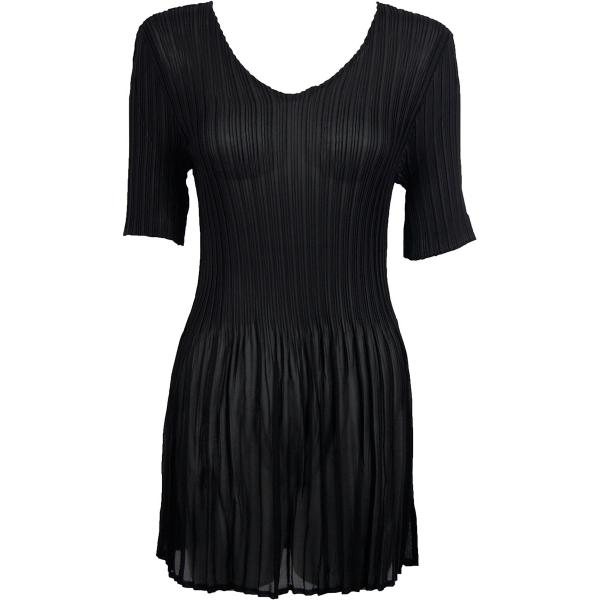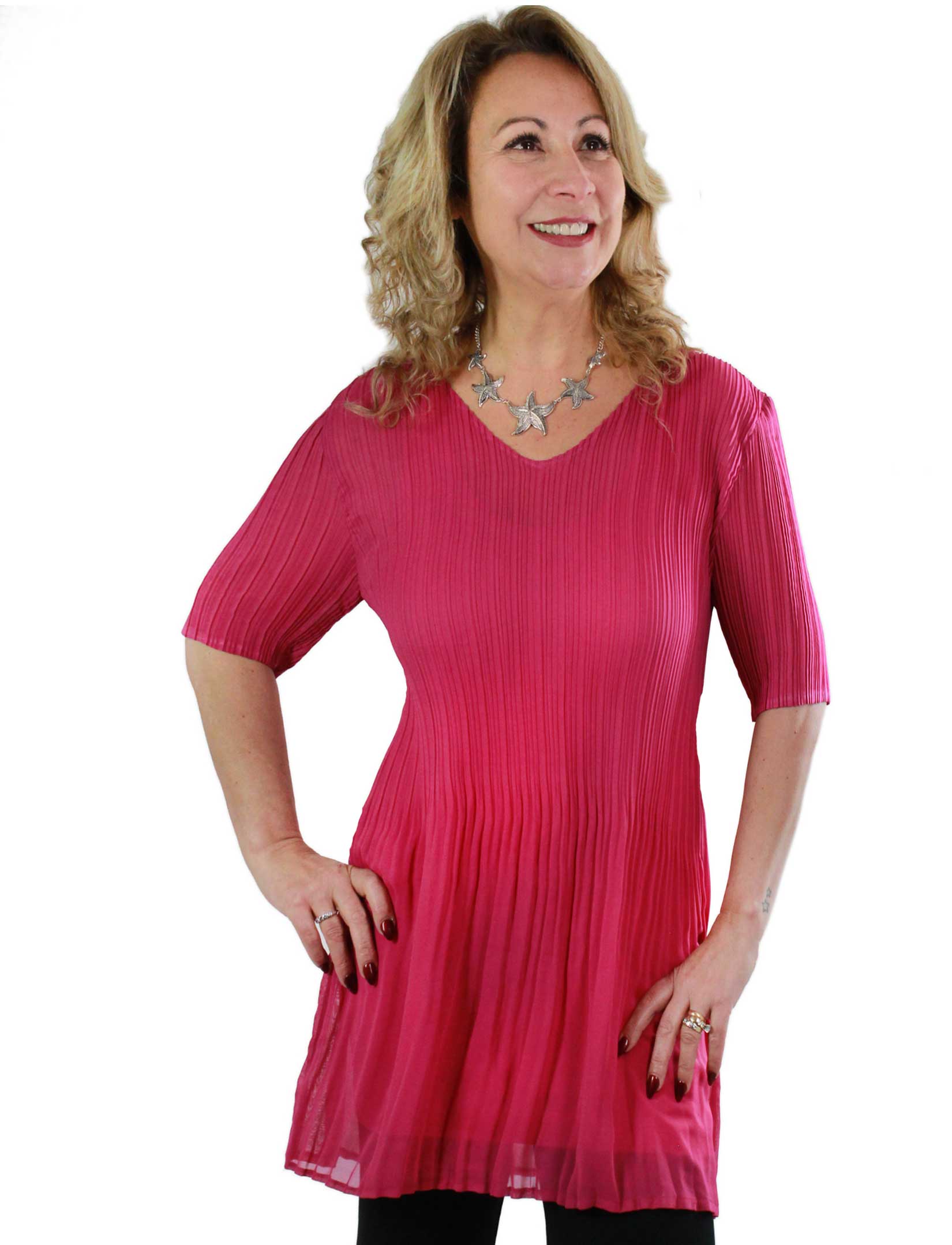 These beautiful Mini Pleat tunics have a flattering longer length, a V neck, elbow length sleeves and flutter hem. Try them with our belts for a terrific look.