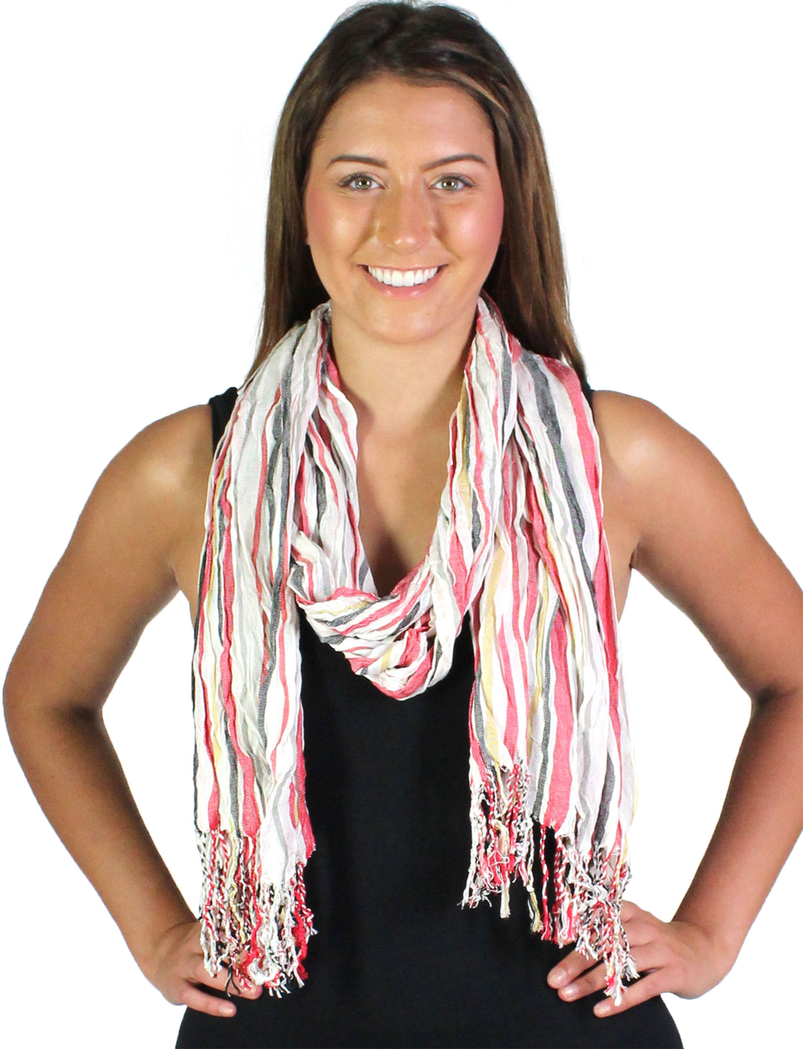 Perfect for a sunny day at the shore or a breezy day on the mainland! This exciting, verticle striped, linen-feel scarf will brighten up any afternoon.