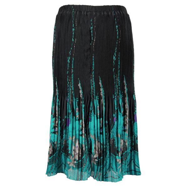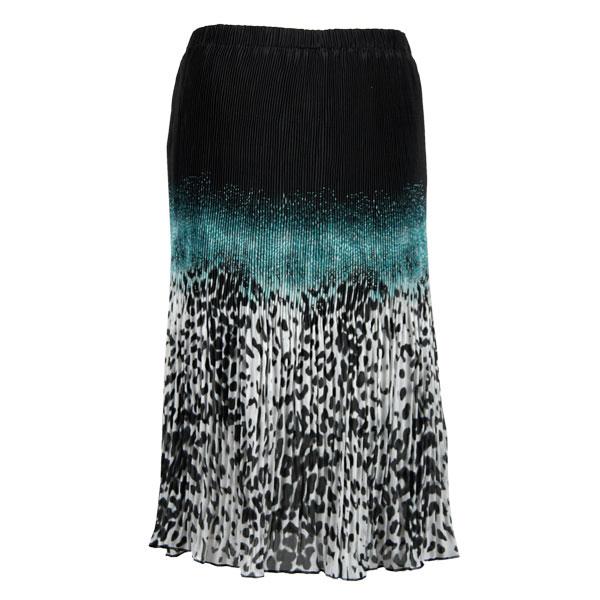 1063 - Georgette Micro Pleat Calf Length Skirts Leopard Border Black-Teal