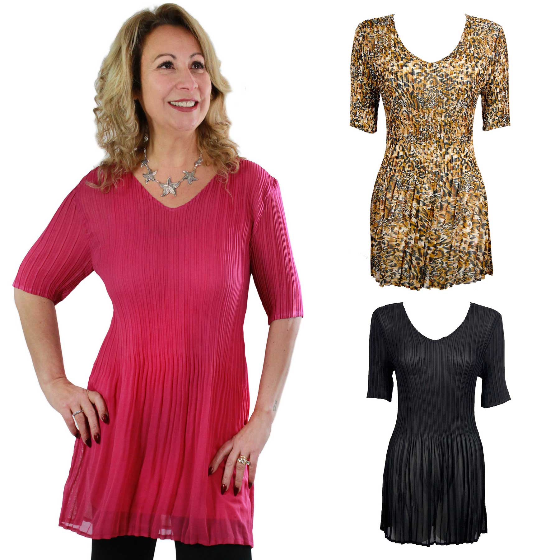 These stylish skirts are packable, crushable and made to travel. Designed with micro pleats from the waist to the flounce accent at the hem, they're calf length with elastic waist.