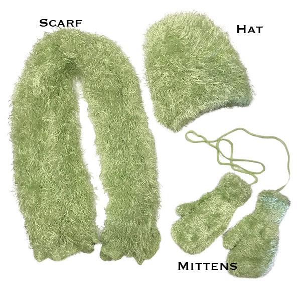 This soft shimmery 3 piece set includes a Magic Scarf, a Hat and Mittens on a String - all created especially for the little ones. Perfect for girls ages 2-8.
