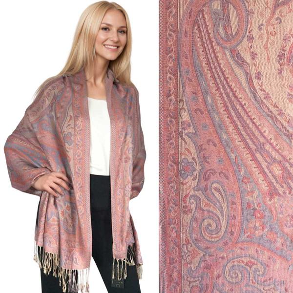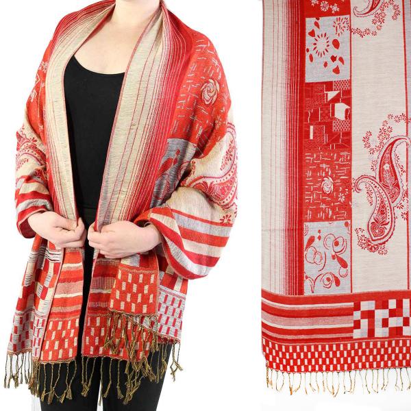773/T - Pashmina Style Shawls Medley Print - Red-Grey