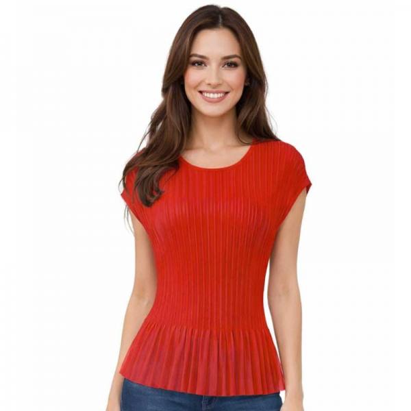 1287 - Georgette Mini Pleats Ruffle Blouses Reptile Floral - Red
