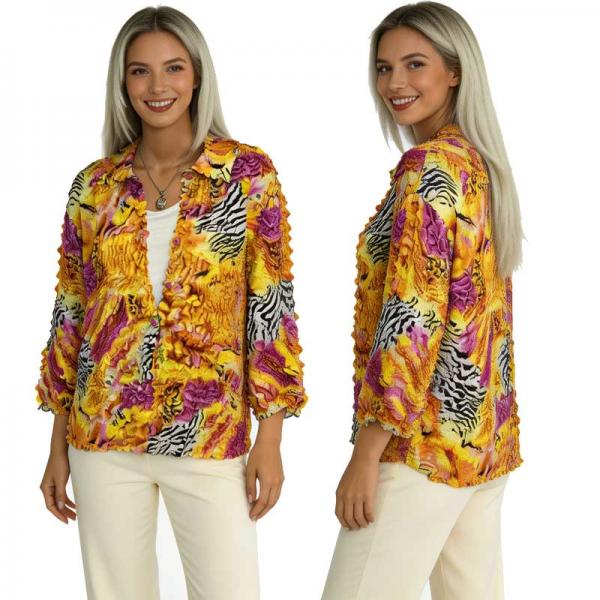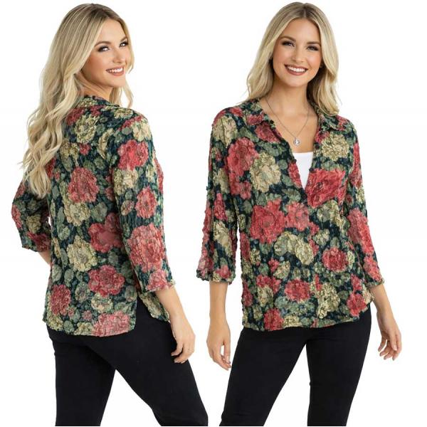 These attractive tops are extremely light weight, just 2.5 ounces. They are perfect for warm days or for layering. The fabric is gathered and pressed to resemble flower petals. They are perfect for travel because they wash easily and never need ironing. Polyester Imported