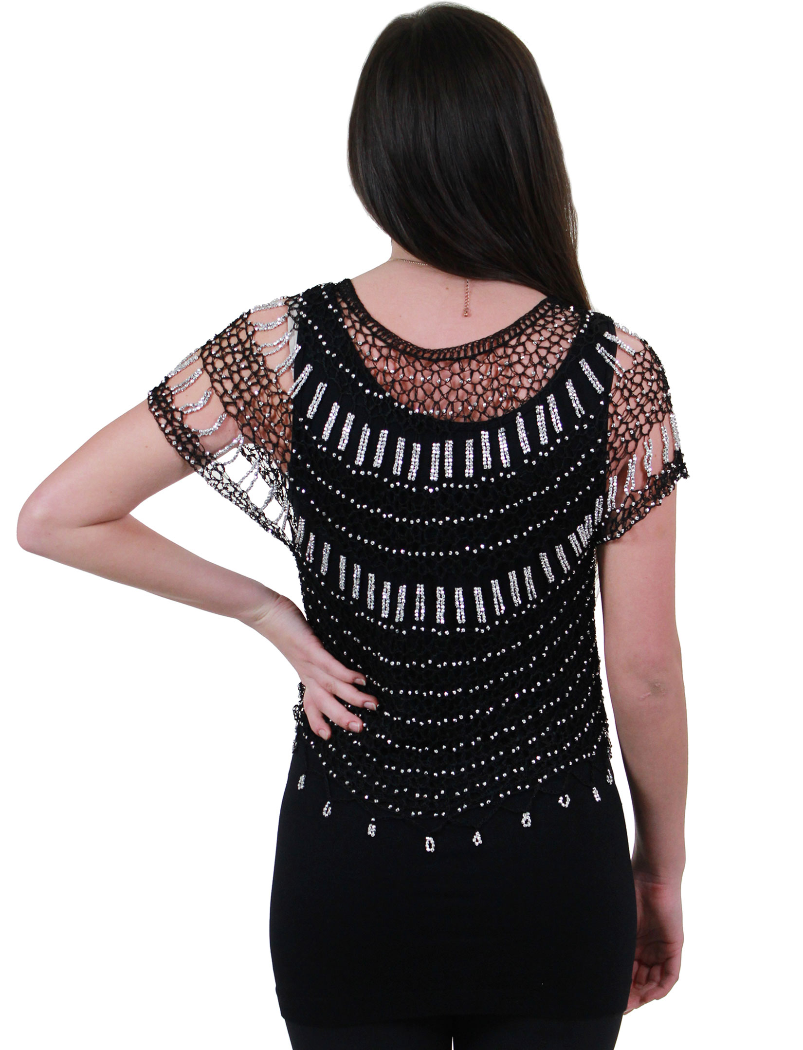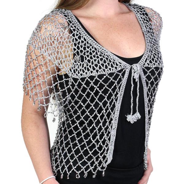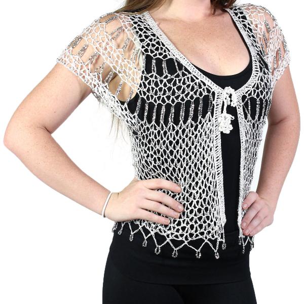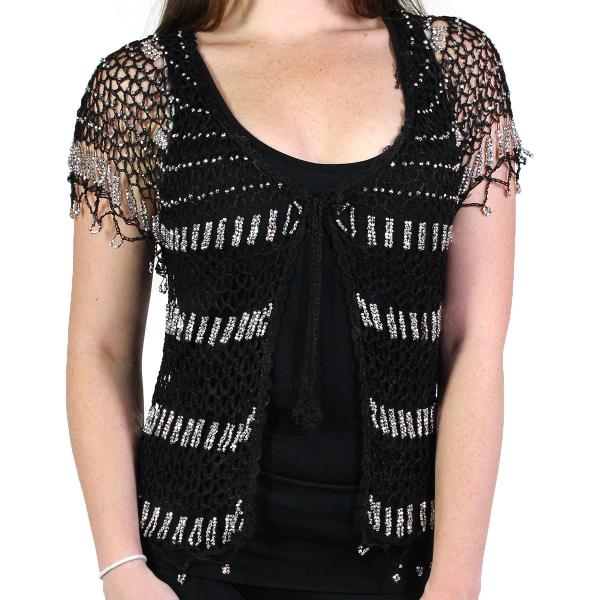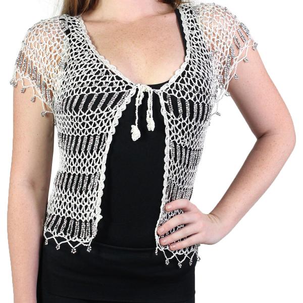 This cap sleeve evening cardigan is a new take on our beaded evening ponchos and beaded triangles! The cardigan is artfully made by hand with beautiful beading. It is an elegant accessory for a special occasion or for just looking special anytime.