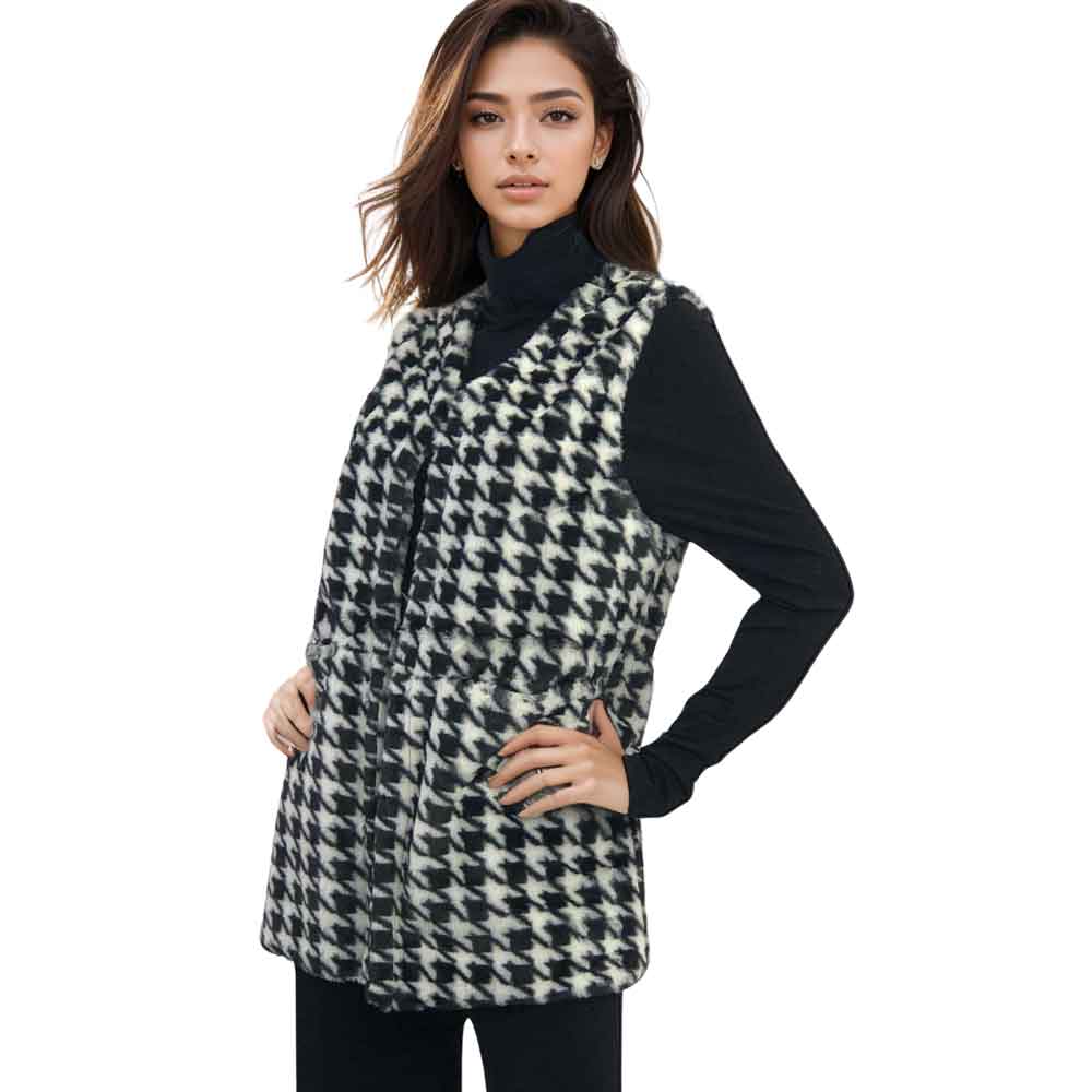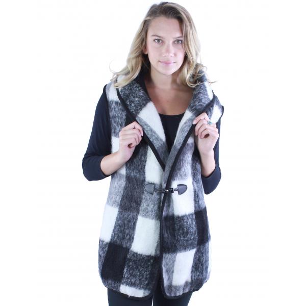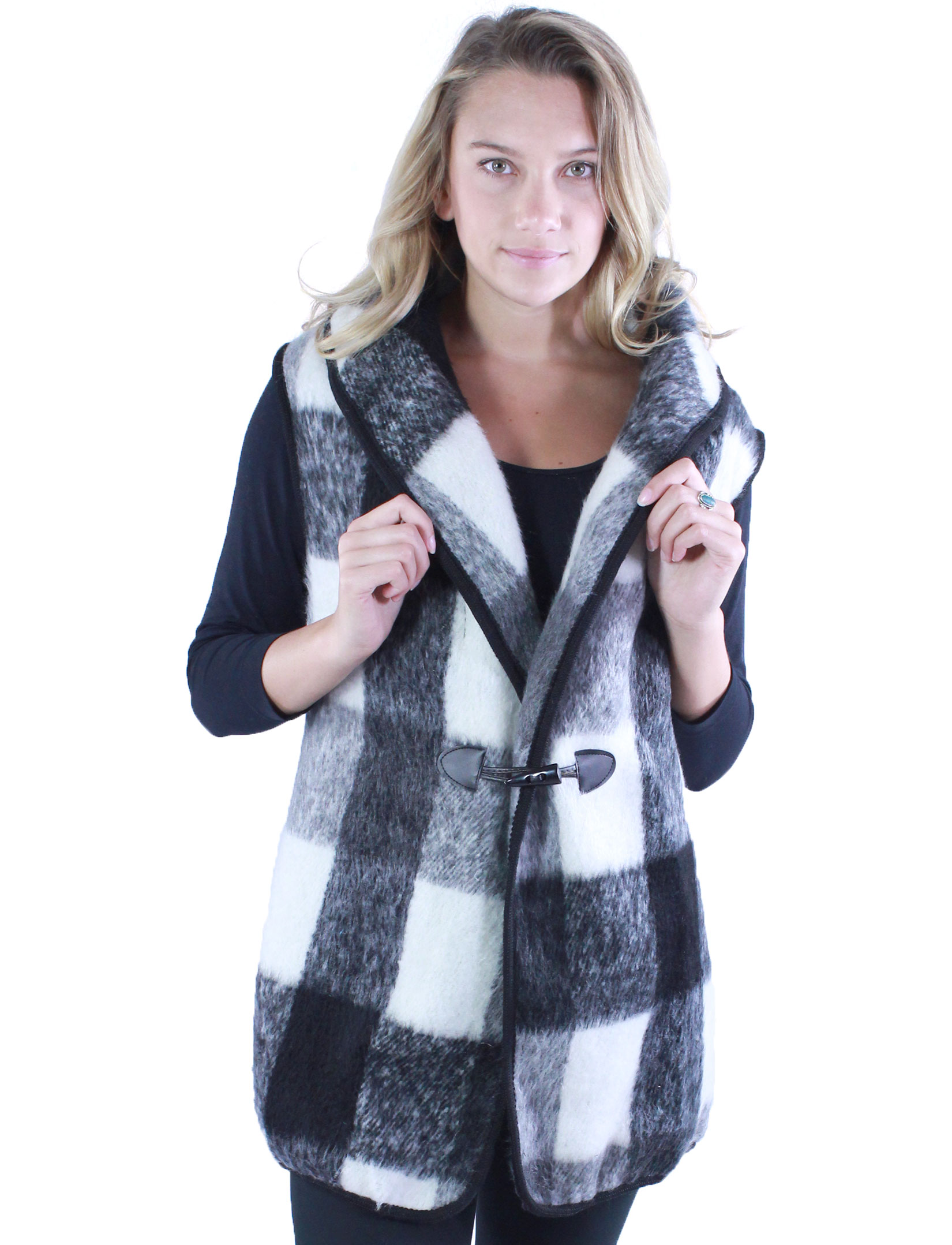 City meets country in this black and ivory buffalo check brushed vest with toggle button. Pair it with your favorite suede boots for a chilly evening out or with jeans and a black hoody for a great weekend look.