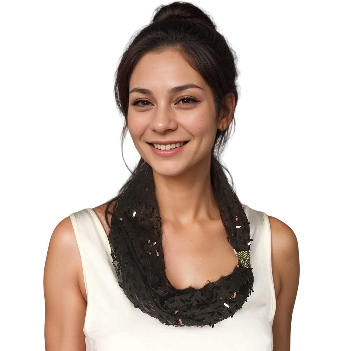 A necklace scarf makes accessorizing fool proof.