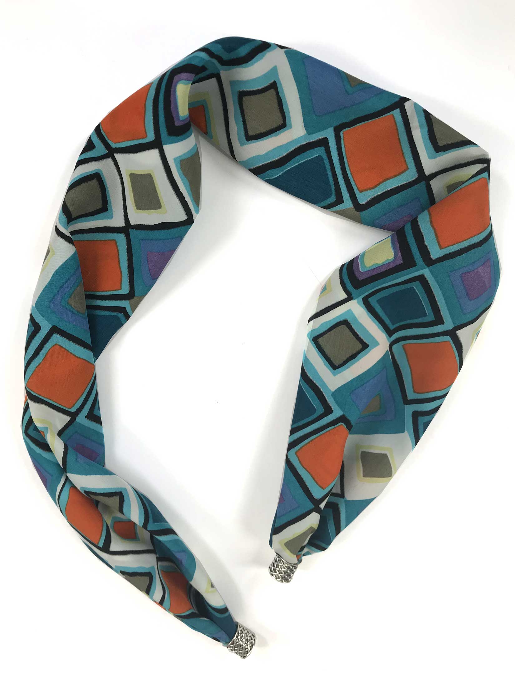 We utilize the best fabric to create a soft lovely drape and filigree nickel clasps with powerful ceramic magnets to make sure these scarves stay secure around the neck.