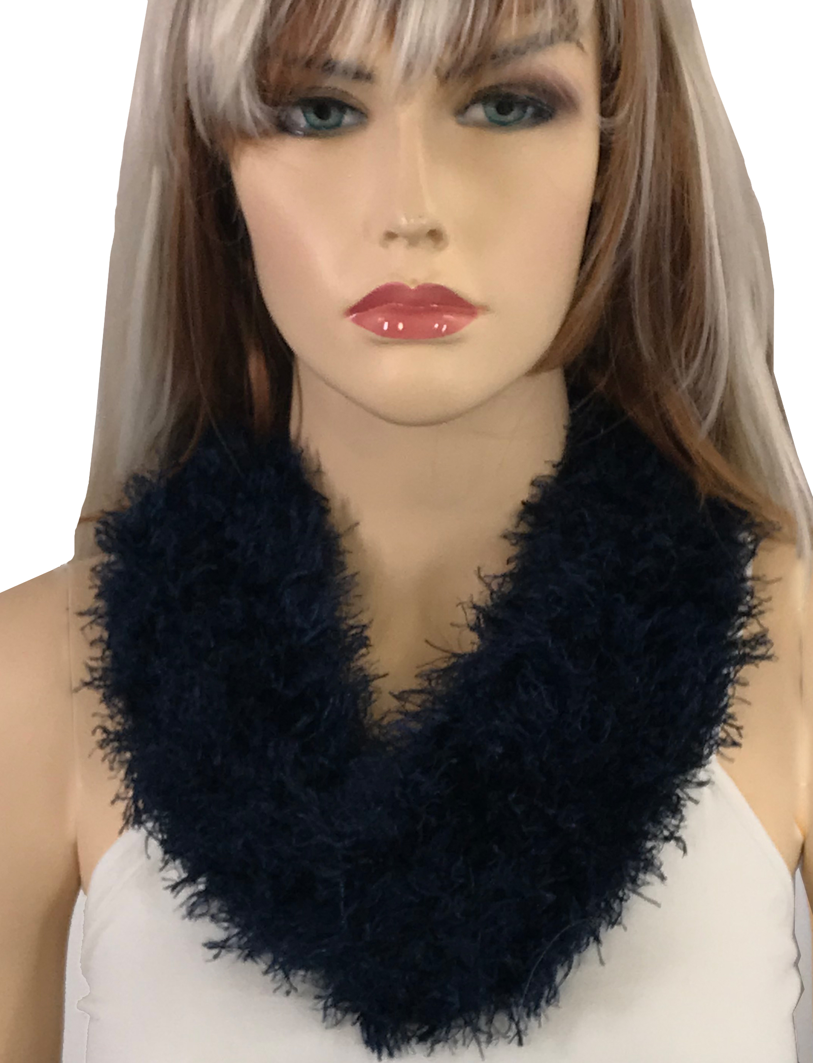 The yarn is an eyelash style that resembles light fur as soft as a kitten to touch. They are lightweight, attractive, and versatile accessories for wear throughout the seasons.