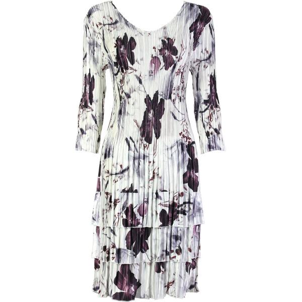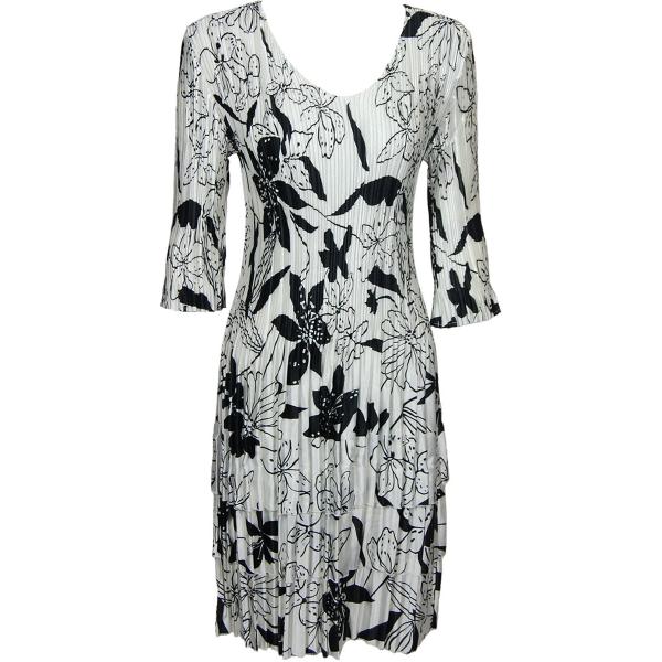 1554 - Satin Mini Pleat 3/4 Sleeve Dresses Flowers and Dots 2 Jade-White Satin Mini Pleats - Three Quarter Sleeve Dress