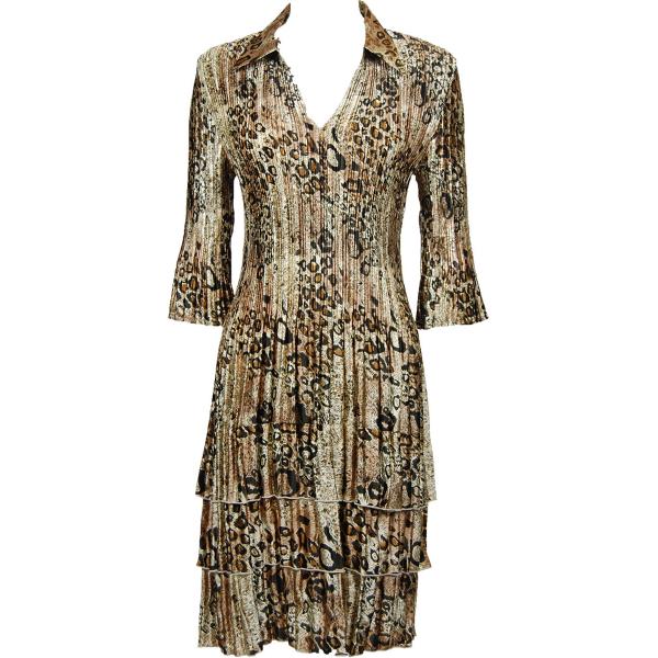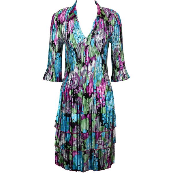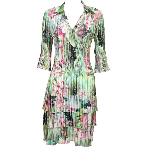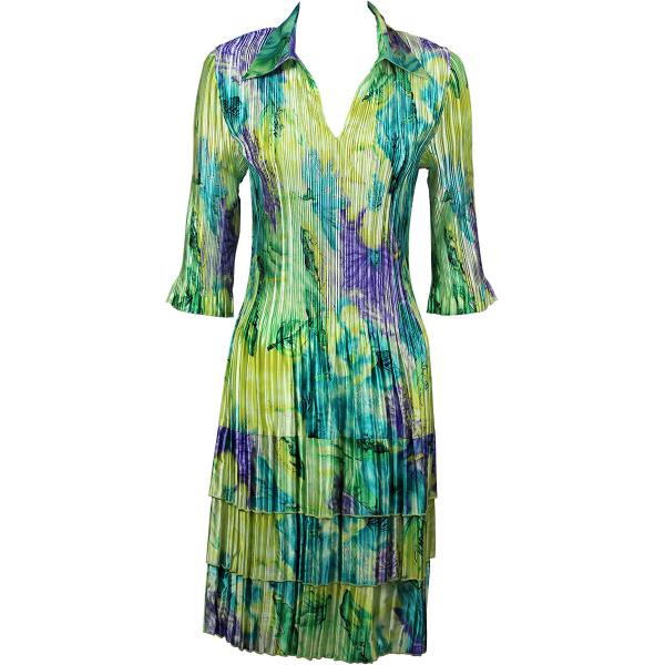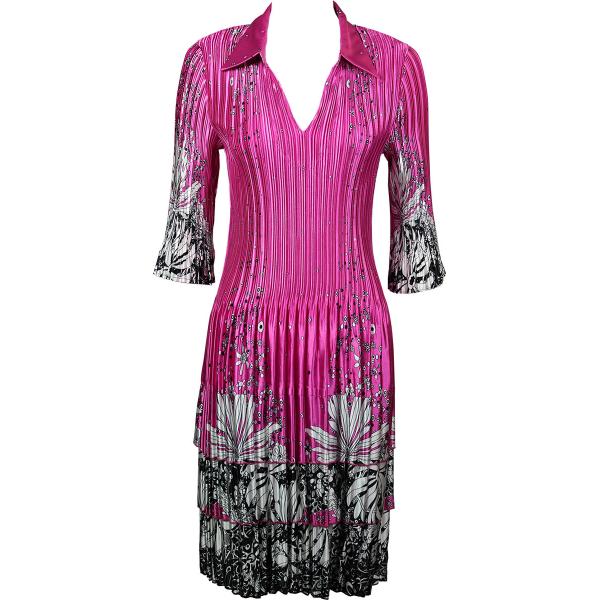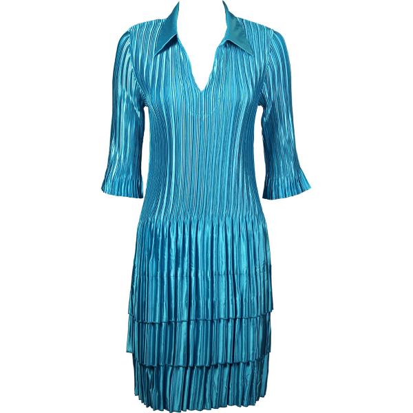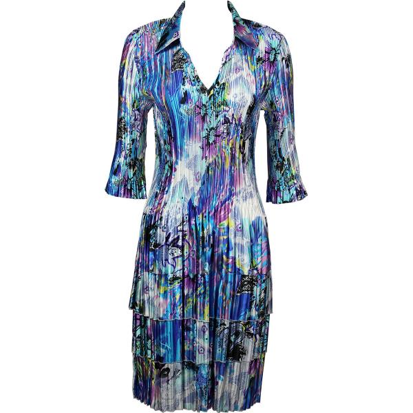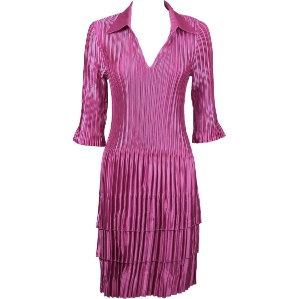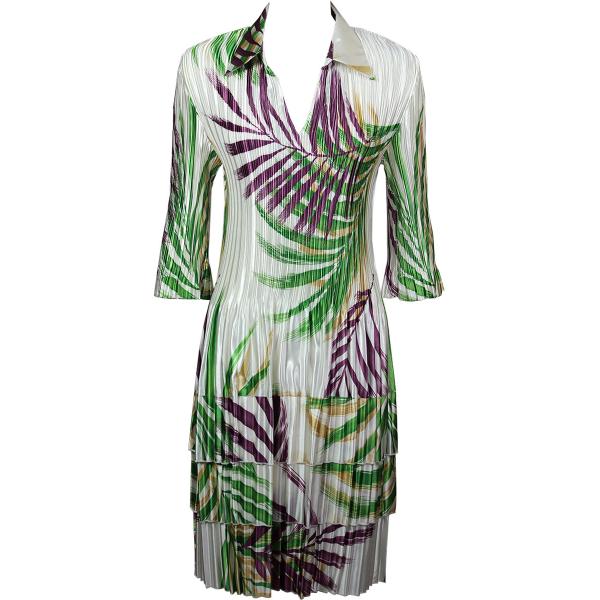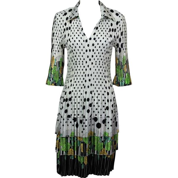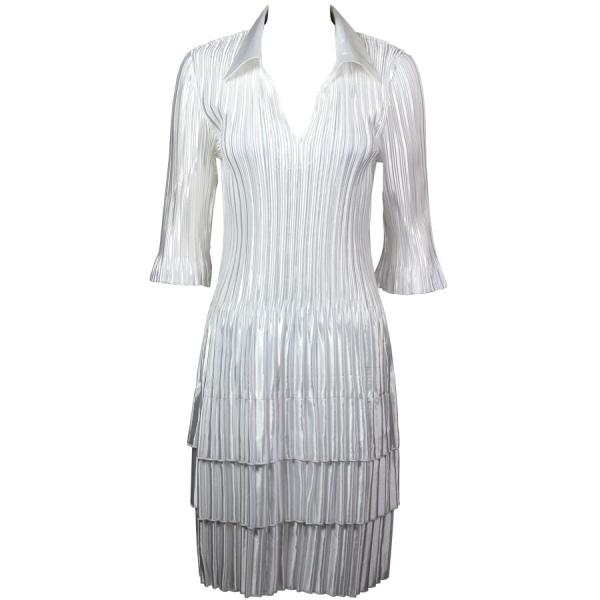 1519 - Satin Mini Pleat 3/4 Sleeve Dress Collar Solid White Satin Mini Pleat - Three Quarter w/ Collar Dress
