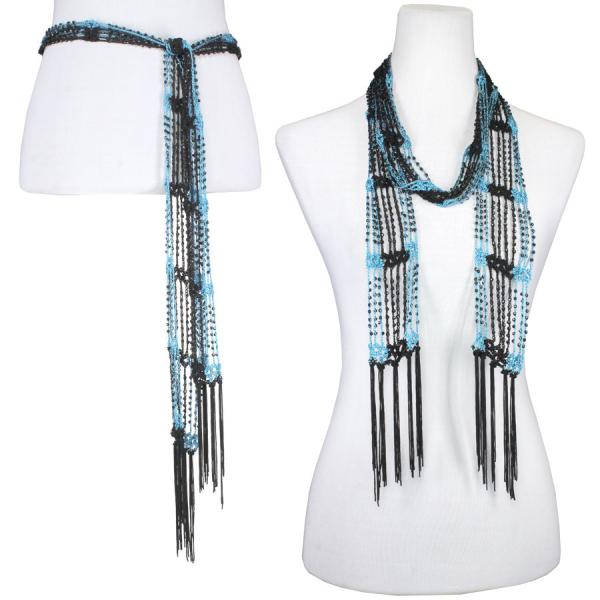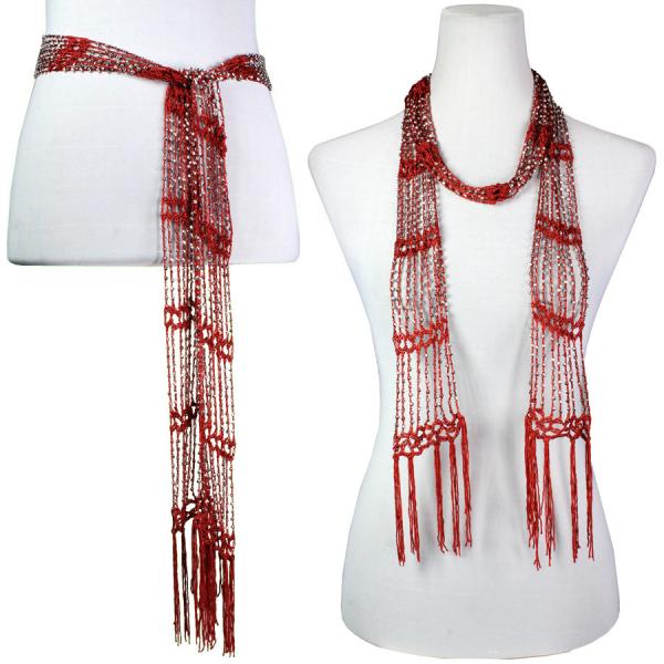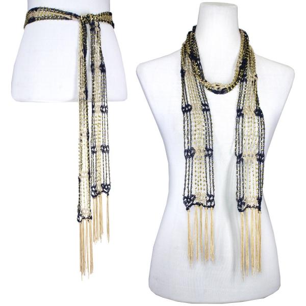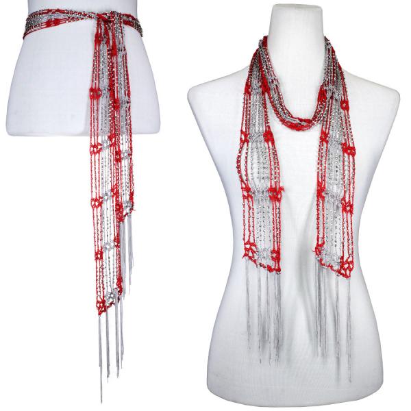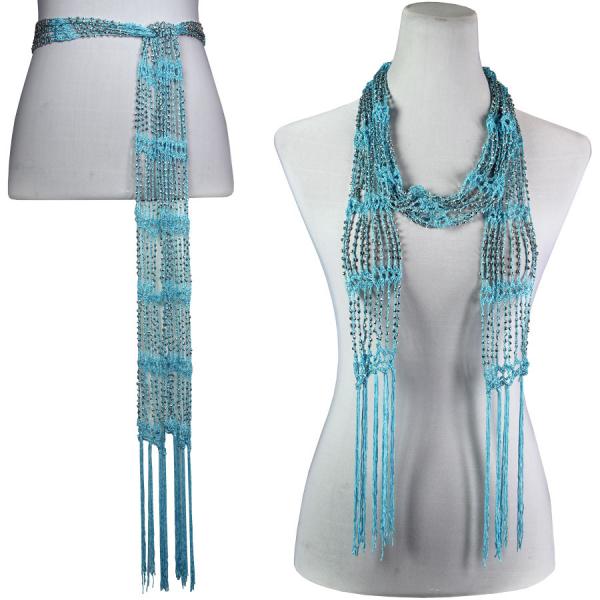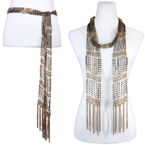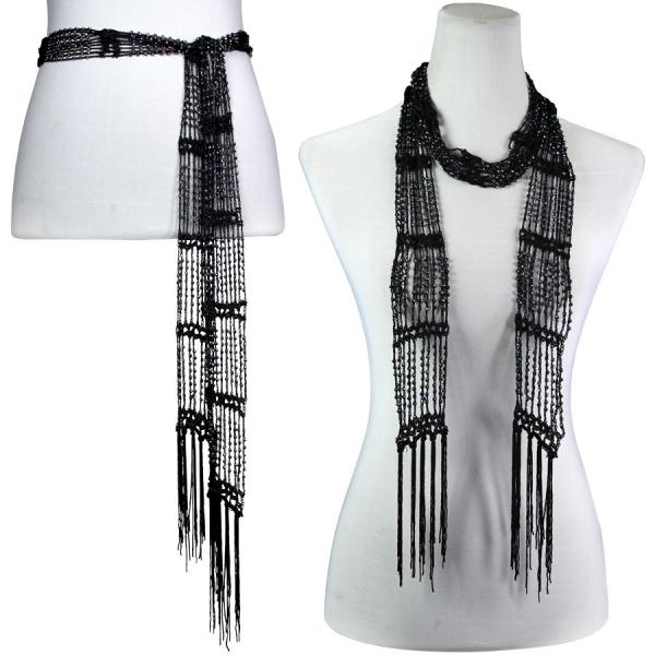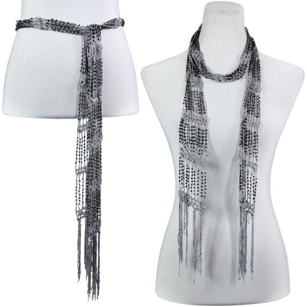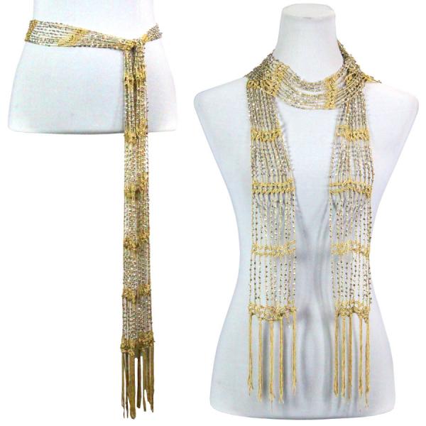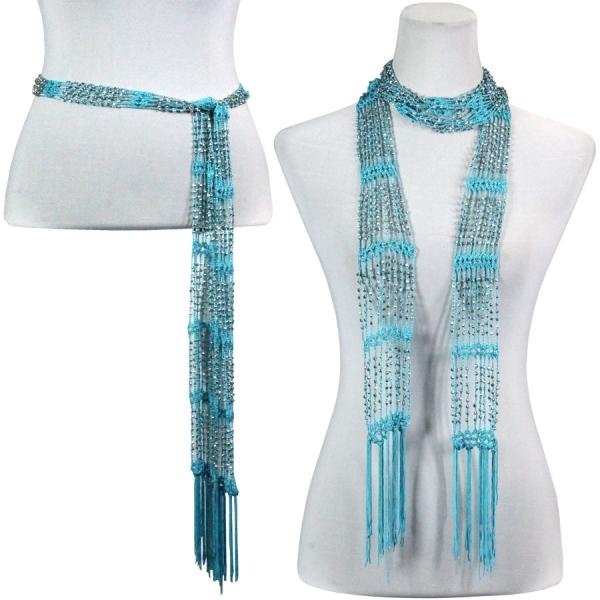 An item that is truly versatile, a scarf and a necklace in one. Our Shanghai beaded accessory is a lightweight band of thread in a fishnet style adorned with crystals.
