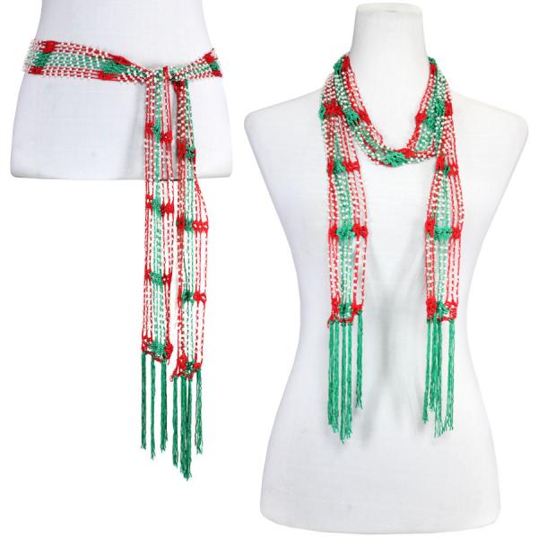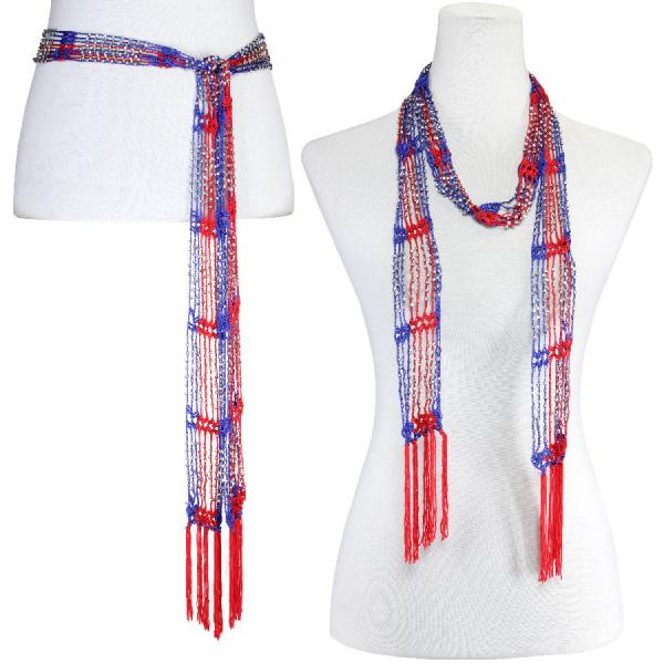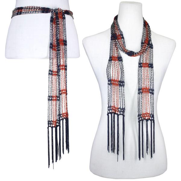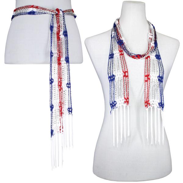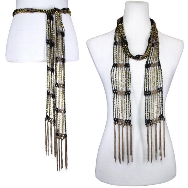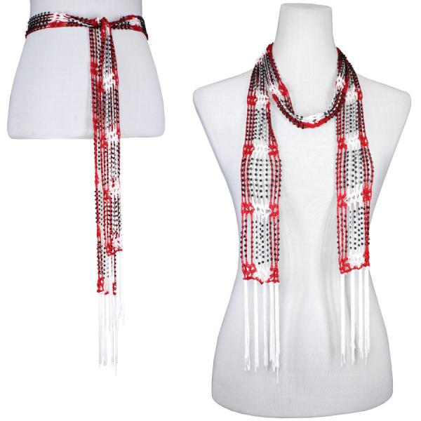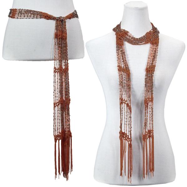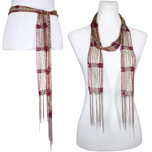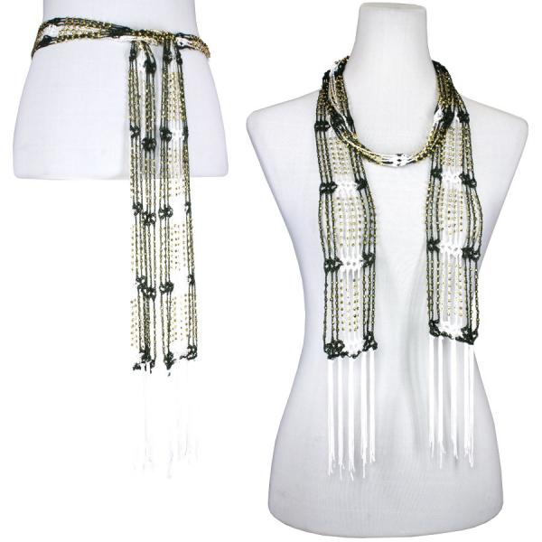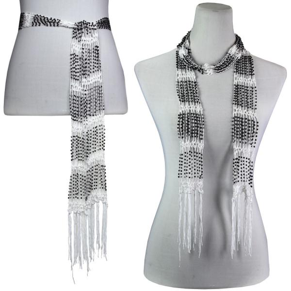 An item that is truly versatile, a scarf and a necklace in one. Our Shanghai beaded accessory is a lightweight band of thread in a fishnet style adorned with crystals.