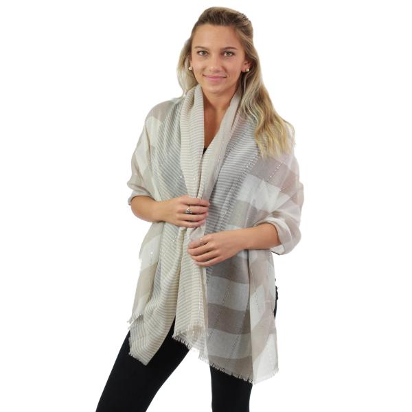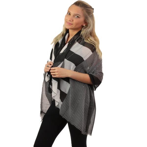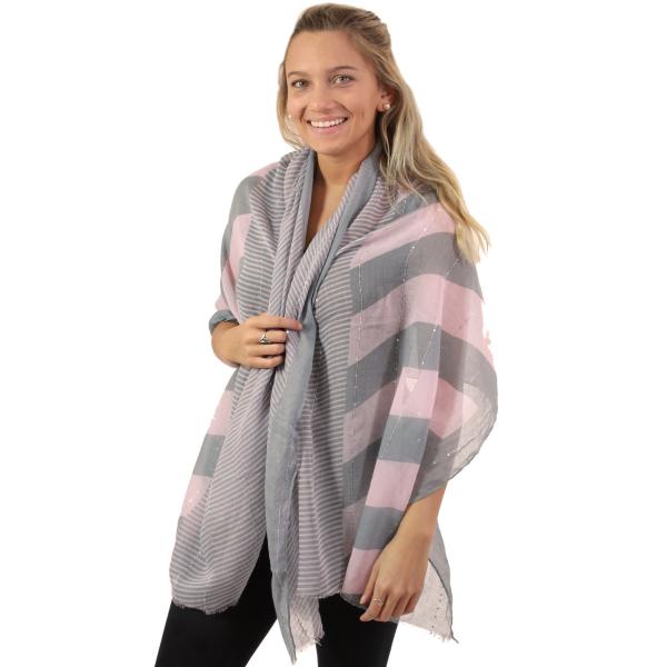 Add depth, fun and individualistic style with our Multi Stripe with Sequins scarf. Short fringe adorns the short edges giving this show stopping scarf even more depth!