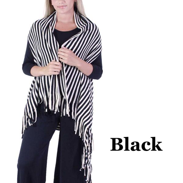 Add soft warmth and style with our Knit Striped Vest. Flattering vertical stripes and fringe detailing make this the perfect piece to throw on when there is a little chill in the air