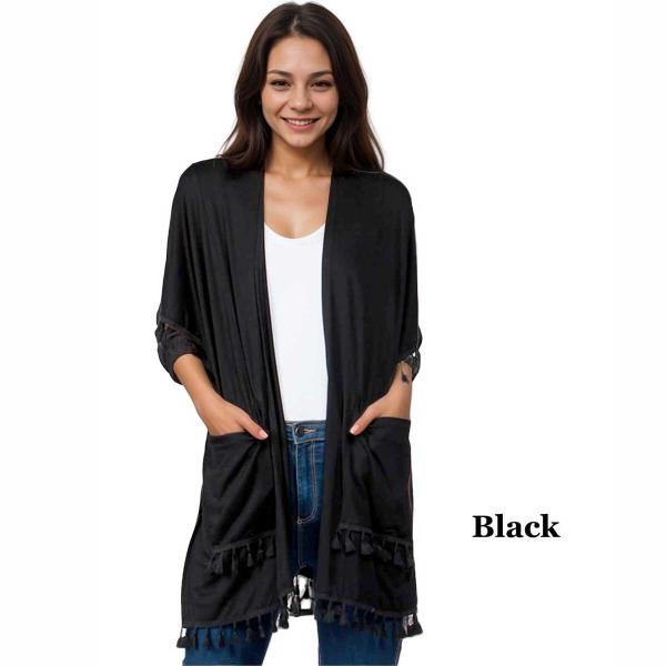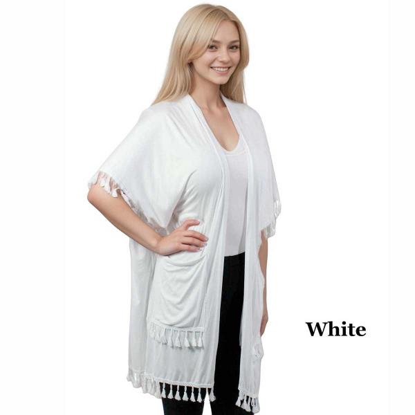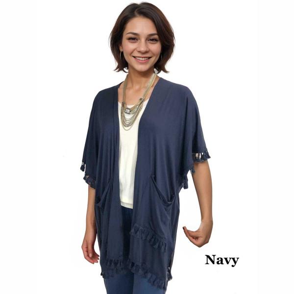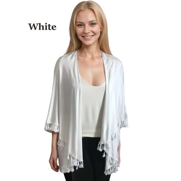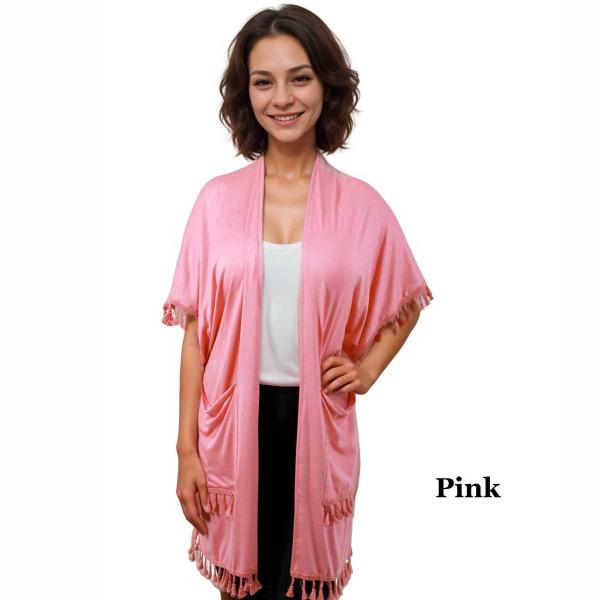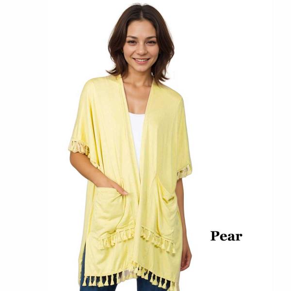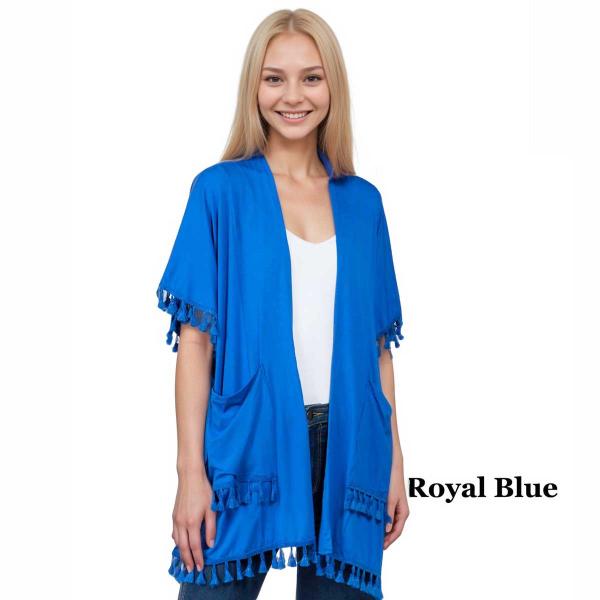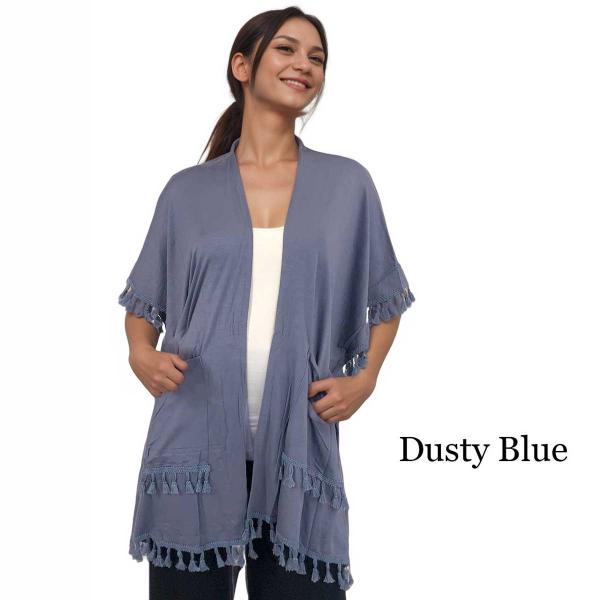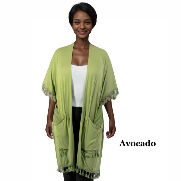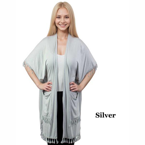 This kimono is comprised of soft fabric. It is perfect as a casual piece over tee and jeans or leggings and just the right weight for three season use. It has convenient pockets that you love and great style.