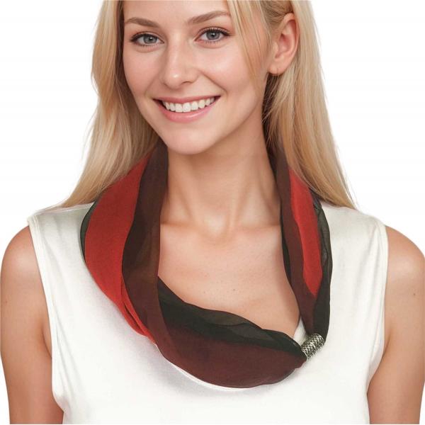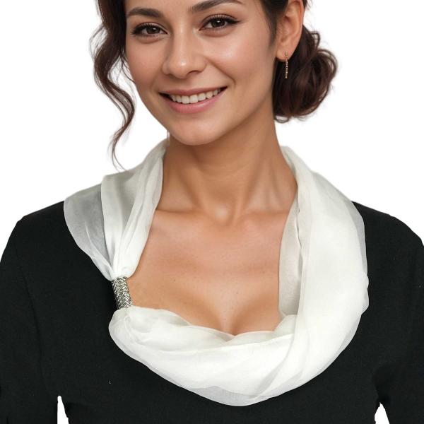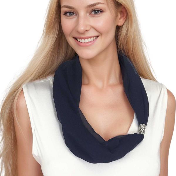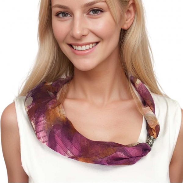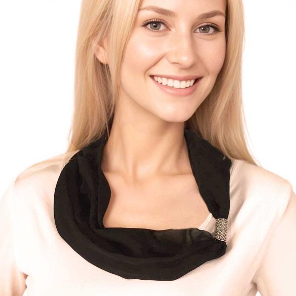 We utilize the best fabric to create a soft lovely drape and filigree nickel clasps with powerful ceramic magnets to make sure these scarves stay secure around the neck. The result is a single loop infinity scarf that allows you to embellish and enhance but never overwhelm your outfit. You can be stylish and perfect without fussing and adjusting all day long.