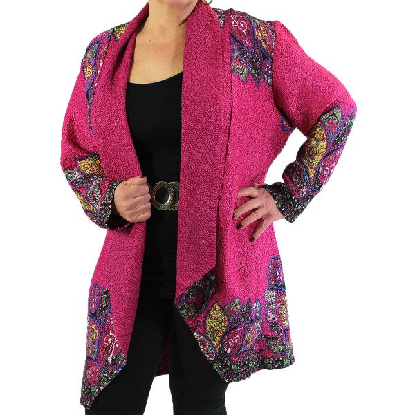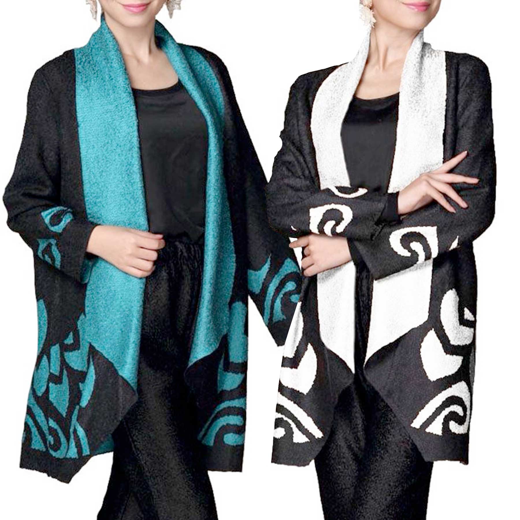 These cardigans are made with our famous crushed satin so they never wrinkle and always looks fresh. They are of a dramatic design that looks very high end and will grab attention wherever you go.