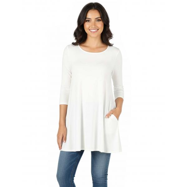 1632 Ivory Boat Neck Flared Top w/ Pockets Ivory Boat Neck 3/4 Sleeve Flared Top with Pockets 1632