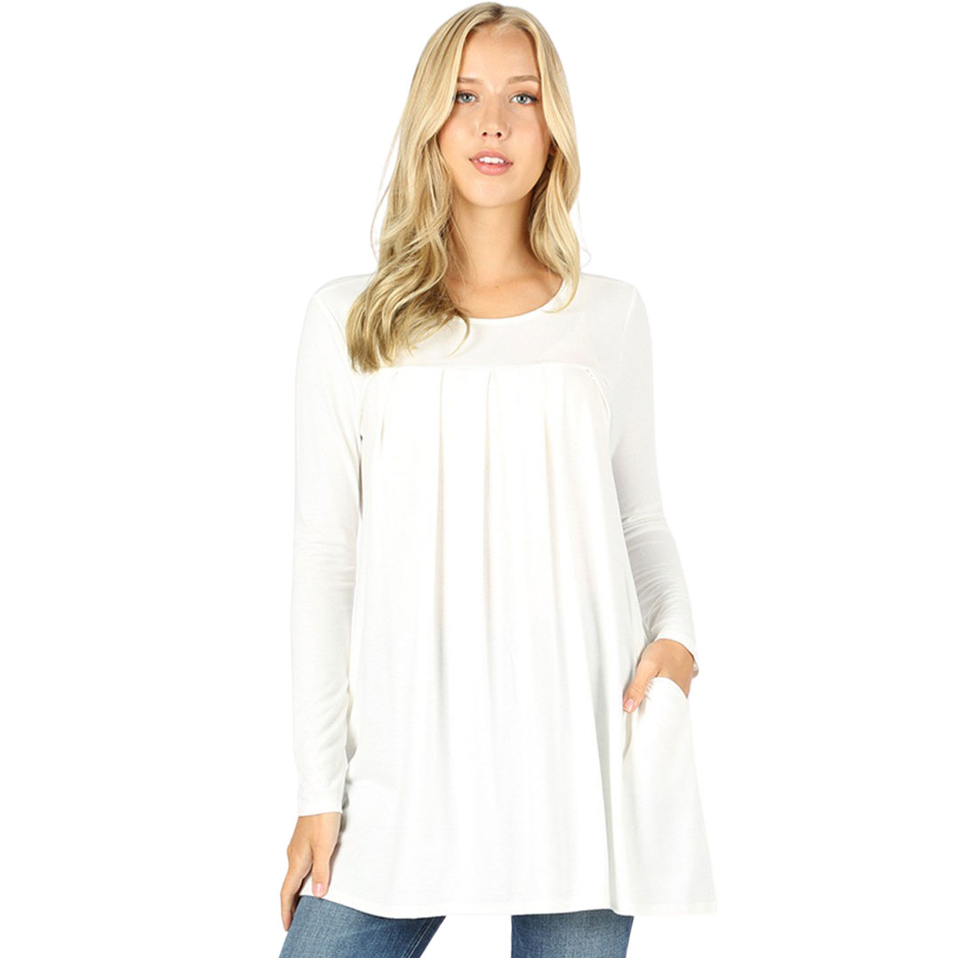 1658 - Long Sleeve Round Neck Pleated Tops IVORY Long Sleeve Round Neck Pleated 1658