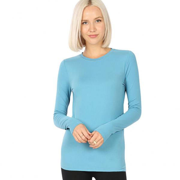 BRUSHED MICROFIBER LONG SLEEVE ROUND NECK TEE - BUTTERY SOFT - WARM - PERFECT STRETCH & RECOVERY TOTAL BODY LENGTH: 25.5", BUST: 32" approx. - MEASURE FROM SMALL IMPORTED Fabric 90% POLYESTER 10% SPANDEX