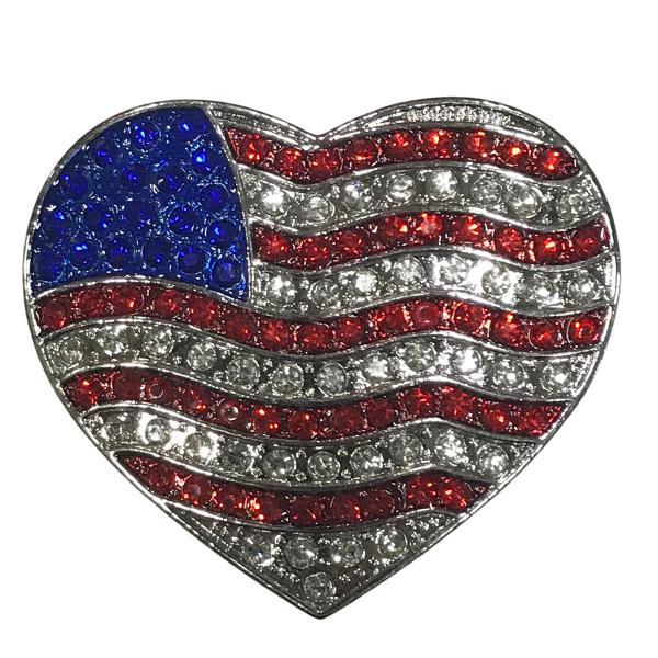 074 Red, White and Blue - US Flag FLAG HEART Magnetic Brooch
