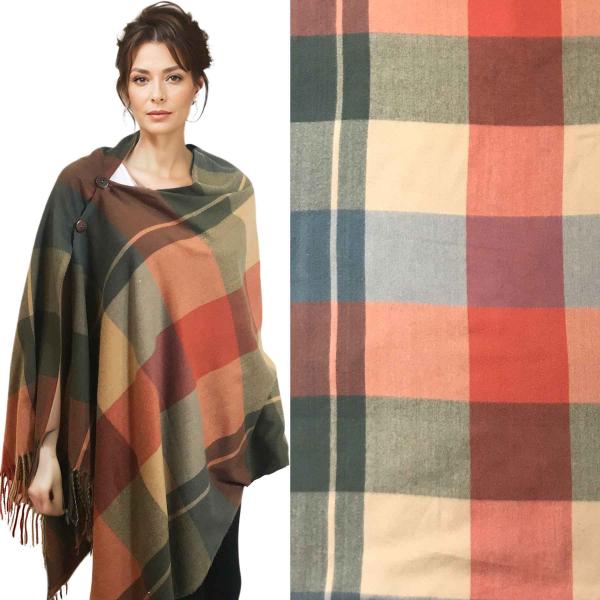 3306 - Country Plaid Button Shawls 3306 Plaid Brown #20 with Brown Buttons