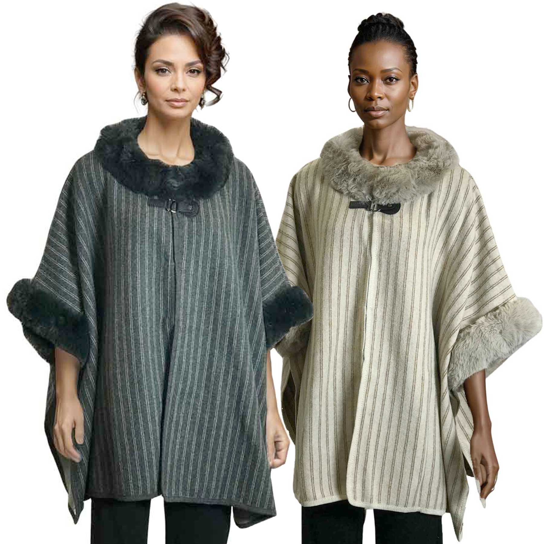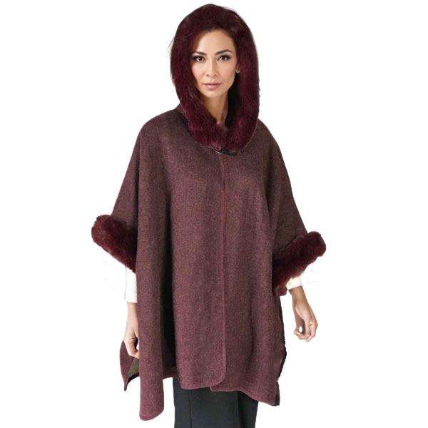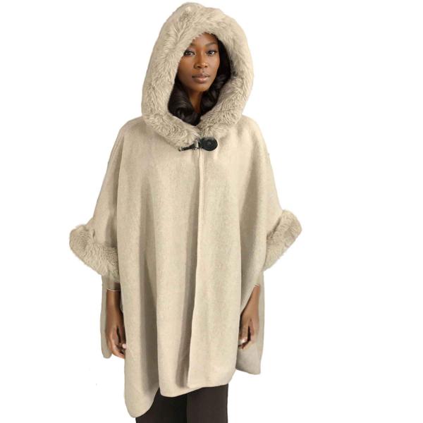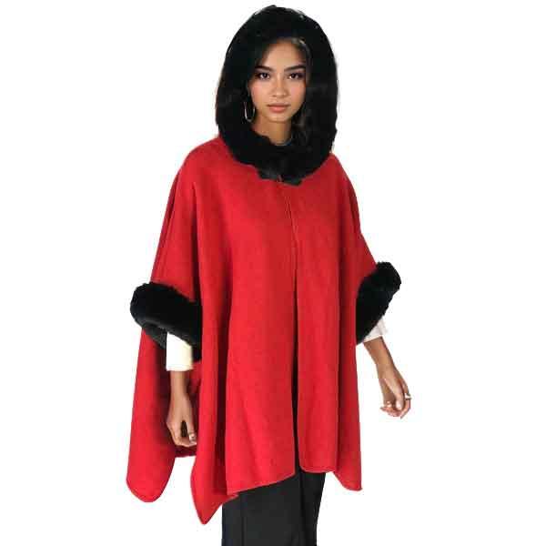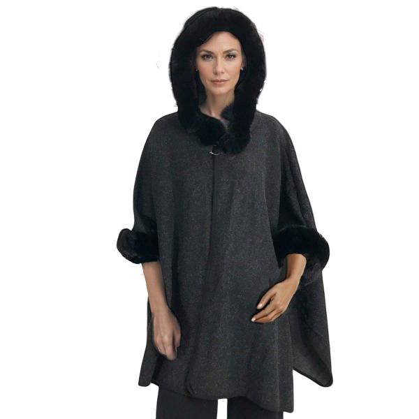 LC14 - Hooded Faux Rabbit Fur Trimmed Cloak LC14 - #1 Black