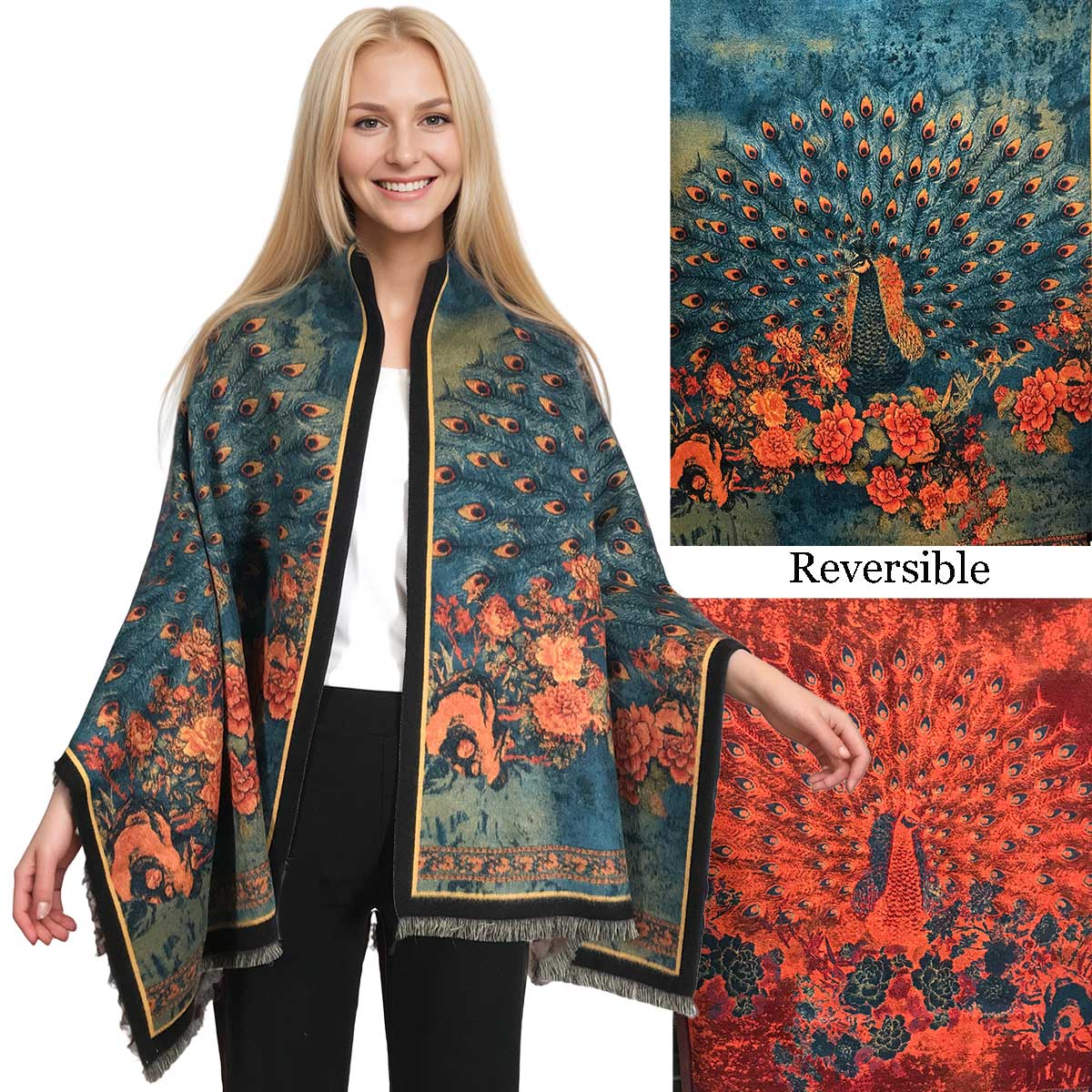 3833/T - Peacock Print Cashmere Feel Shawl Teal Mix