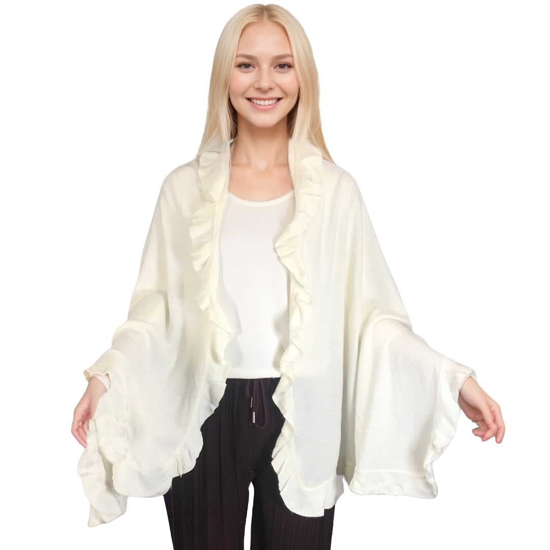 This medium weight Ruffle Knit Shawl is ideal for year round wear. The additional ruffle around the edge adds just a touch of interest and femininity.