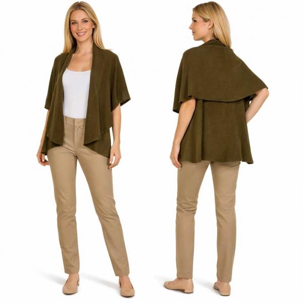 Can be worn with the collar up as a vest or pulled down over arms as a shrug.